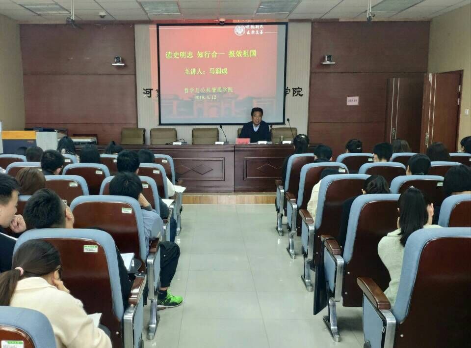 4月12日中午,学院党委书记马润成以《读史明志,知行合一,报效祖国》为题,在学院第一会议室为94名积极分子作报告。