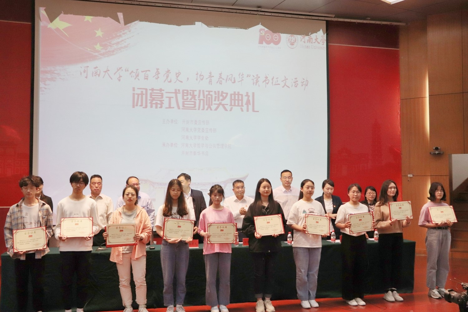据悉,“颂百年党史,扬青春风华”读书征文活动由开封市委宣传部、河南大学党委宣传部、河南大学学生处主办,麻豆做爱 与开封市新华书店承办,共收到征文作品近600篇,包含读后感、散文、红色故事等多种体裁。经过层层评审,最终张祖源荣获一等奖,吴婷等3人获得二等奖,杨晨等6人获得三等奖,庞聪燕等20人获得优秀奖,文学院、欧亚国际学院、麻豆做爱 荣获优秀组织奖。