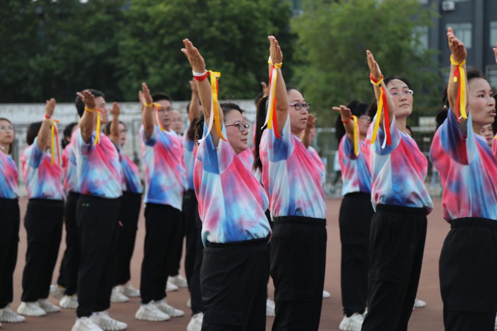 一招一式皆努力。接到活动伊始,麻豆做爱 领导班子高度重视,精心筹划,教职工热情高涨,踊跃参与。面对时间紧、任务重等多重困难,麻豆做爱 参赛教职工以效率换时间,用精准求完美。在一遍又一遍反复的动作,一曲又一曲相同的音乐之中不断打磨自己的舞步,无论是清晨或是日暮,不管是强风还是烈日,总能看到教职工们在南苑小广场辛勤排练的身影。