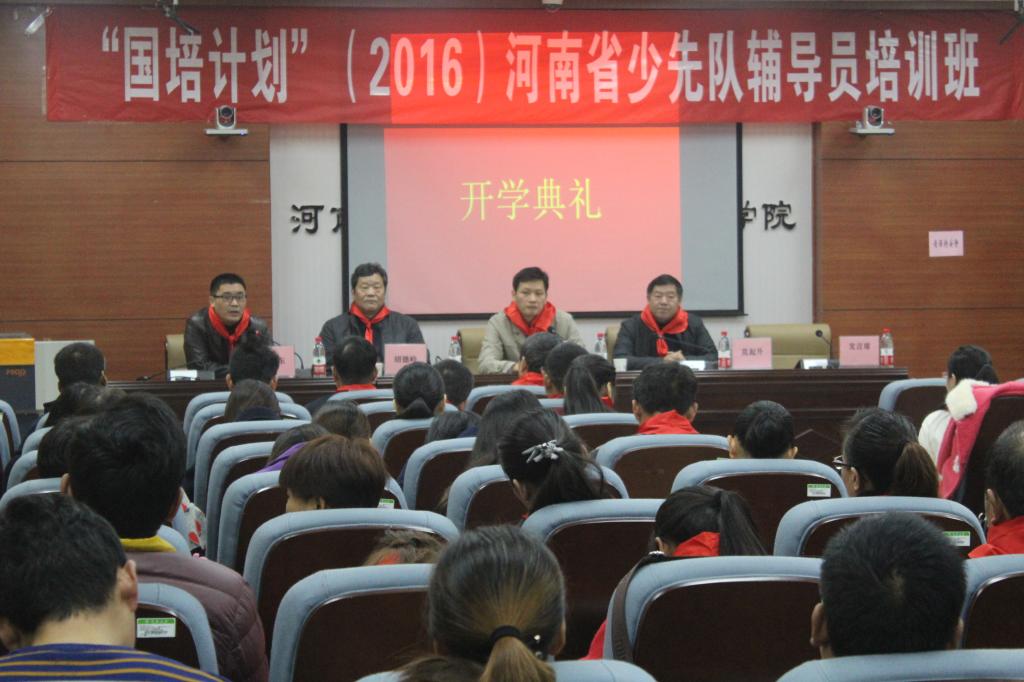 11月13日上午,“国培计划(2016)”少先队辅导员培训班在麻豆做爱 隆重开班,河南省团委副书记王笃波、河南大学远程与继续教育学院院长胡德岭、麻豆做爱 党委书记莫起升和院长张向东以及一百名来自一线的少先队辅导员教师参加了开班仪式。