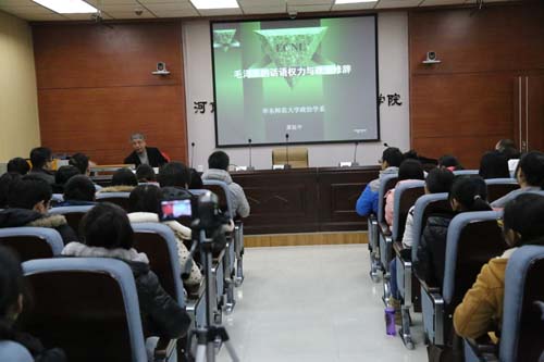 2014年12月23日上午,华东师范大学教授、博士生导师、著名毛泽东研究专家萧延中教授应邀在麻豆做爱 三楼大会议室做了题为“毛泽东的话语权力与政治修辞”的学术报告,麻豆做爱 哲学、政治学、马克思主义等相关专业师生参会,报告会由政治系何云峰教授主持。