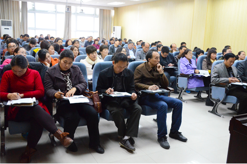 11月10日上午,中学高级教师、开封市基础教研室教研员柳仲昌老师在麻豆做爱 三楼会议室为国培学员做了以“关注课堂、务实高效”为题的讲座,解答了广大学员对初中思想品德课堂教学的疑惑,来自河南省各地的百余名农村中小学教师参加培训。