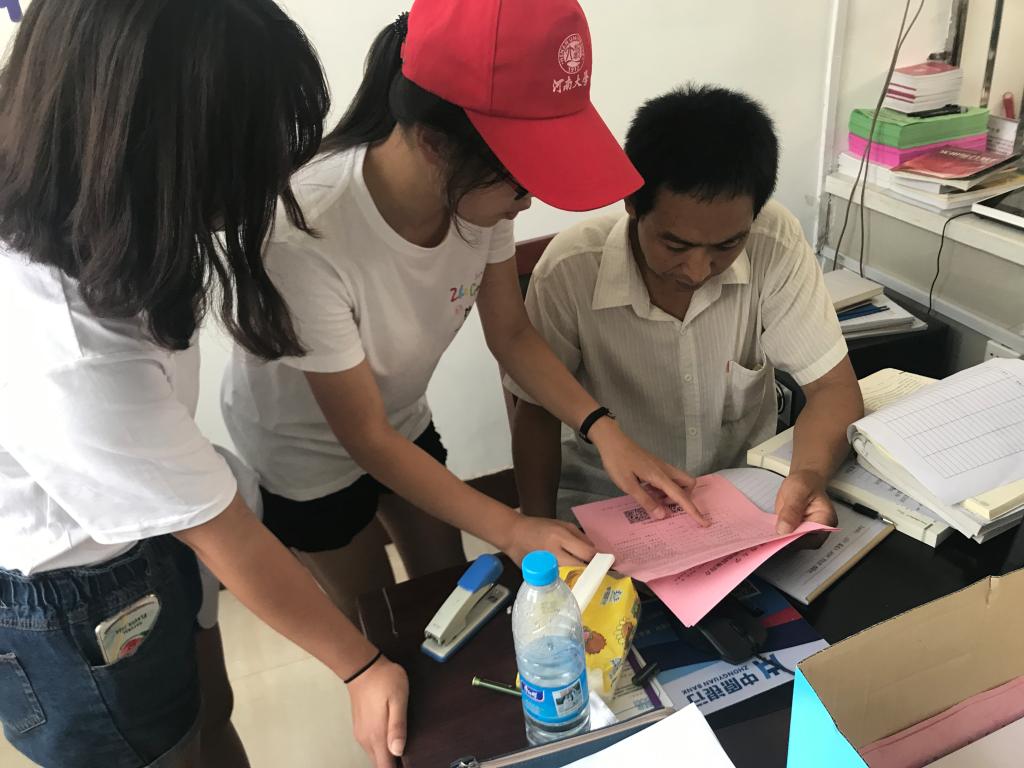 团队队员们组成宣讲小分队,向广大村民介绍了学生资助措施,耐心解答了他们的疑问。宣讲过程中,队员们从“校园地国家助学贷款”、“生源地信用助学贷款”、“新生‘绿色通道’”、“其他资助措施”、以及“奖学金制度”等五大方面,系统、全面的为村民进行了讲解,针对村民们提到的具体助学贷款流程,队员们从基本申请条件、申请材料、贷款额度等方面进行解答。在兰考县普惠金融改革试验区范场村的普惠金融服务站进行宣传时,站内的负责人表示:“现在的学生资助政策越来越多,真正体现了教育公平,我们的金融扶贫对农村大学生也有相应的资助措施,农村贫困家庭的孩子不再担心上学难了”。