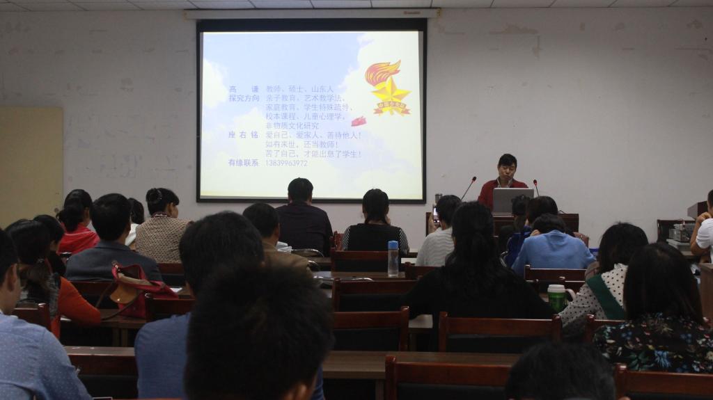 9月27日上午,全国十佳才艺教师、开封市家长学校校长高谦老师主讲的“认识自己的队员”讲座在麻豆做爱 三楼会议室举行。国培计划少先队员辅导员培训班学员参加了讲座。