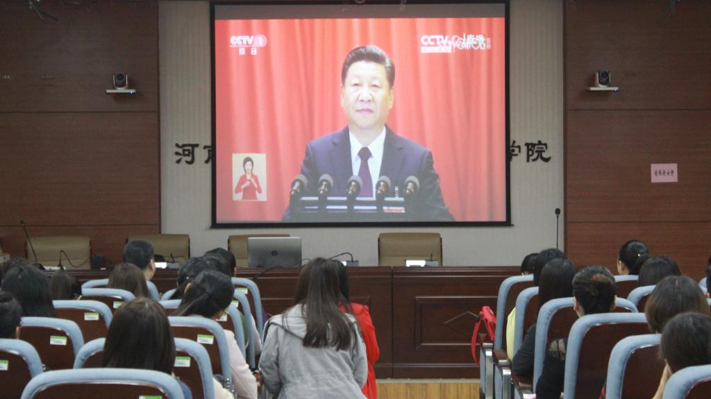 10月18日上午9时,麻豆做爱 组织师生在学院三楼大会议室集中观看了党的十九大开幕会电视直播。