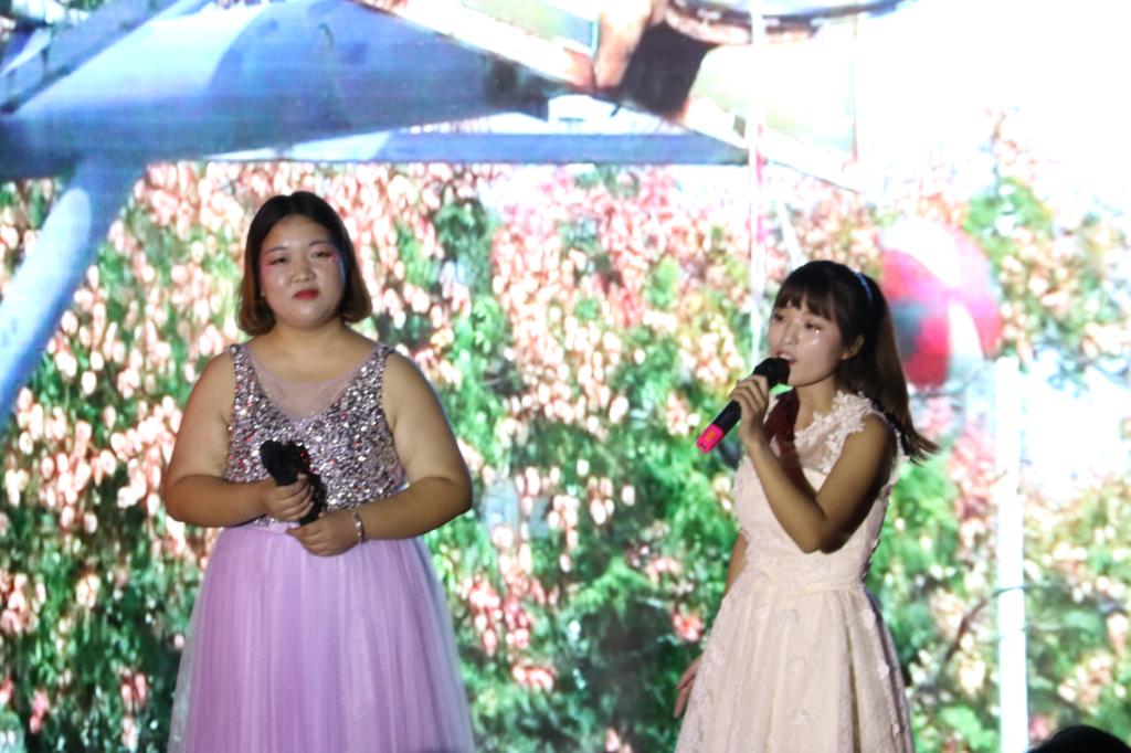 乐起舞动,激情四射的开场舞,首先便为晚会营造了热烈的气氛。随后研究生气势恢宏的诗朗诵,给观众带来极大震撼。精彩的健美操激发了新生们参与体育活动的热情。喜剧小品《廉价航空》以幽默诙谐的情节调起了全场气氛,将观众们的胃口正式调动起来。小品《新闻联播》紧贴大学生活,带来欢乐的同时也引发了大学生们对“校园贷”和健康生活的思考。相声《梦中婚》通过诙谐的叙述,反映了各种生活现象,惹得观众捧腹大笑。歌曲《飘过海洋来看你》用优美的旋律再现了大学生们的日常生活中的酸甜苦辣,表达了大学生们对未来美好生活的向往。院里为17级新生准备的教官视频,瞬间让新生们泪洒当场,纷纷回想起了与教官共同生活的点点滴滴。随后的经典T台秀,小品《烤串》,歌曲串烧,以及学生会主席团带来的华尔兹舞蹈《赤道和北极》都让台下阵阵掌声和欢呼声一浪高过一浪。同时,舞台一侧的微信墙大屏幕也在不断显示着大家对节目的评价和对晚会的祝福。最后,歌曲《光阴的故事》为晚会画上了完美的句号,歌声中饱含着同学们的铿锵自信和对未来的的无限希望!