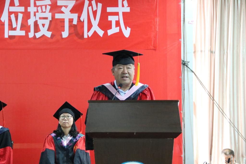 院党委书记莫起升致辞。他向2018届毕业生表示热烈的祝贺并提出三点希望,与同学们共勉:希望同学们秉承哲管大美,勤奋求实,开拓进取;希望同学们胸怀中国梦,勇于担当,甘于奉献;希望同学们屹立世界之志,引领时代,勇立潮头。