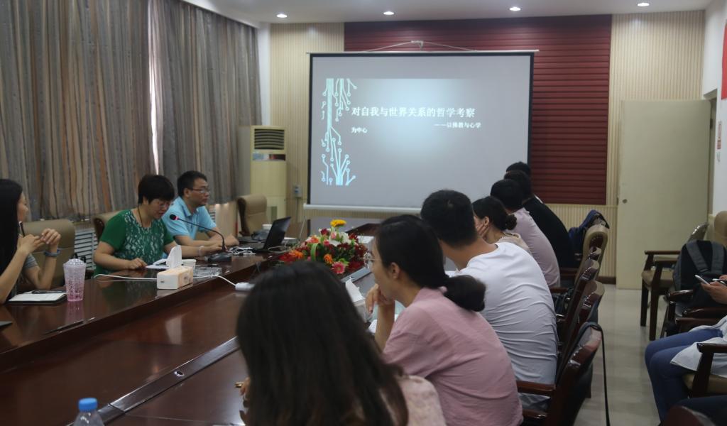 单正齐教授首先回答了“何谓自我”这一问题。一般意义上,精神与身体共同构成了自我;哲学上则认为自我即心灵。当把自我当成实体时,自我与世界是外在的主客对立关系;当考虑人与万物血肉相联的整体性时,自我与世界则处在一种“天人合一”的状态之中。接着,具体分析了西方哲学史上关于自我与世界关系的理论,突出了从传统哲学到现当代哲学转向过程中,自我与世界关系问题的理论嬗变。接着,单教授从心物关系分析心学与理学中的自我与世界。阳明心学中的真实自我即是本心良知,良知即天地主宰。良知感应处为物,心外无物,物外亦无心。而理学认为在仁心的全体大用中,心、理、物一体如如流行。人心为天地万物的灵明,人与世界息息相通,融为一体。单教授也从“万唯唯心”角度分析了佛教哲学对人与世界的关系理解。并总结了中国哲学不同于西方传统哲学的特色,突出了中国哲学整体性、直觉性和圆融性思想特色,体现了中华文化民族个性;又结合萨特、海德格尔、狄尔泰等现代西方哲学家的相关论述,揭示了中西哲学与文化的共性。