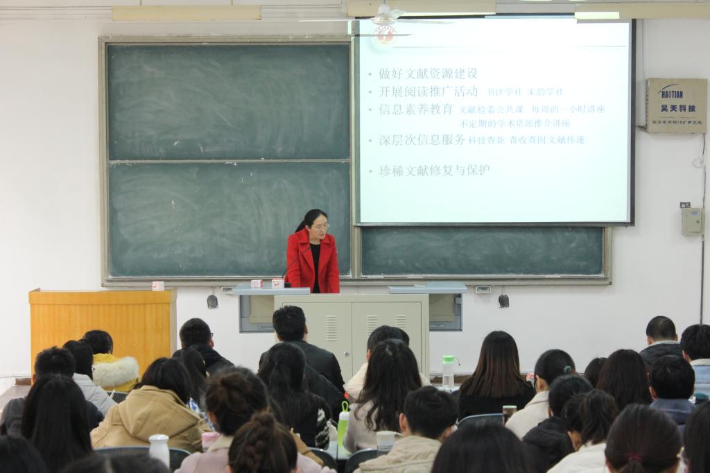 11月29日下午,学校图书馆韦爱芬老师以“学术信息资源获取的方法与途径”为主题,为麻豆做爱 创新研修课学生做专题讲座。讲座由马翠军老师主持,100余名学生聆听了此次讲座。