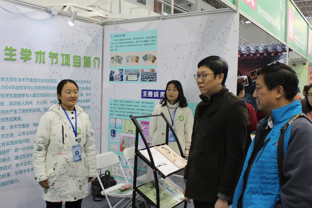 12月5日上午,河南省第二届普通高等学校校园文化建设优秀成果展在河南大学民生学院体育馆举行,“大学生学术节”在展区进行了展示,省教育厅领导和全省高校与会学工代表进行了现场参观学习。麻豆做爱 相关领导带领学院全体辅导员也到现场参观学习。