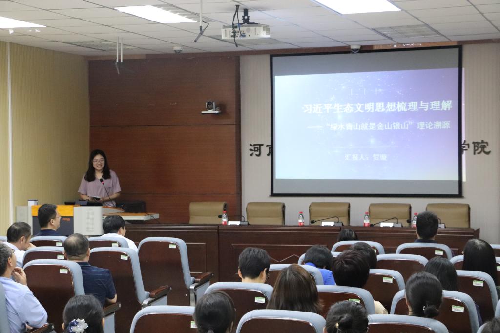 贺璇博士在“习近平生态文明思想梳理与理解”报告中,回顾了中国古代朴素主义生态观的基本内涵,梳理了建国后生态环境保护思想的发展演变历程,总结了习近平生态文明思想体系的主要内容及分类。在此基础上着重分析了“绿水青山就是金山银山”这一思想的经济学基础。