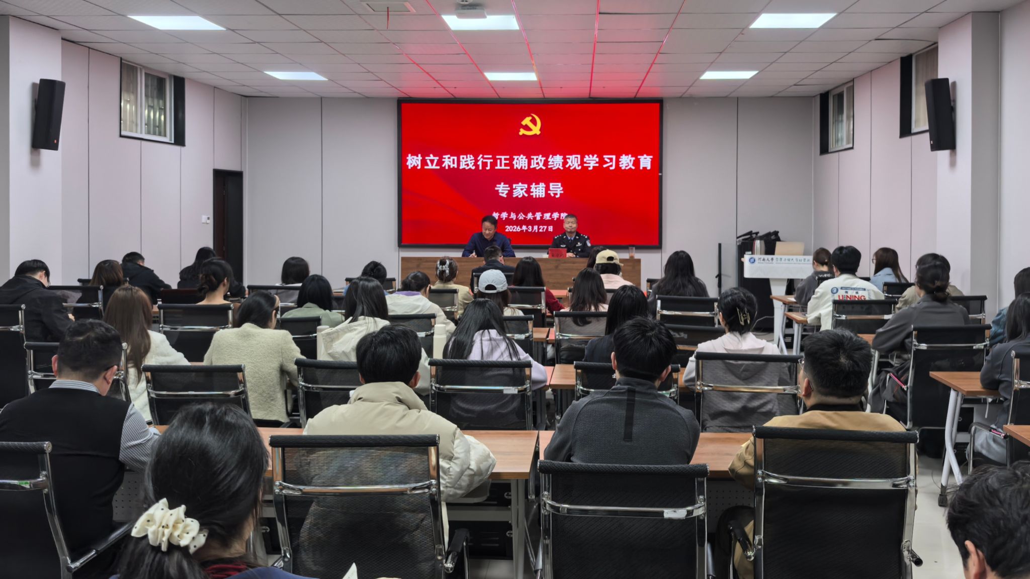 按照学校关于开展树立和践行正确政绩观学习教育工作安排,3月26日至27日,麻豆做爱 用两天时间,采取集中学习、个人自学、专家辅导和交流研讨相结合的方式,举办树立和践行正确政绩观学习教育读书班。学院党委理论学习中心组全体成员、各基层党支部书记、各科室负责人及师生党员代表参加。