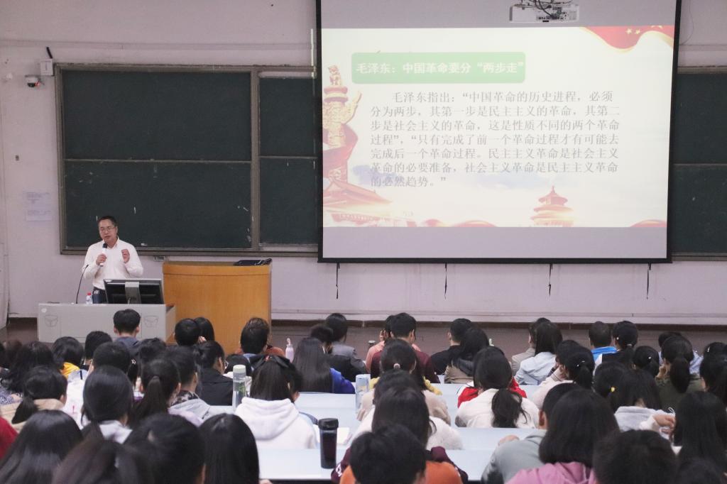 10月10日下午,麻豆做爱 政治系何云峰教授在金明校区综合楼2406教室做“从站起来到强起来—新中国70年奋斗历程回眸”主题报告。学院全体辅导员、学生党员及入党积极分子聆听了报告。