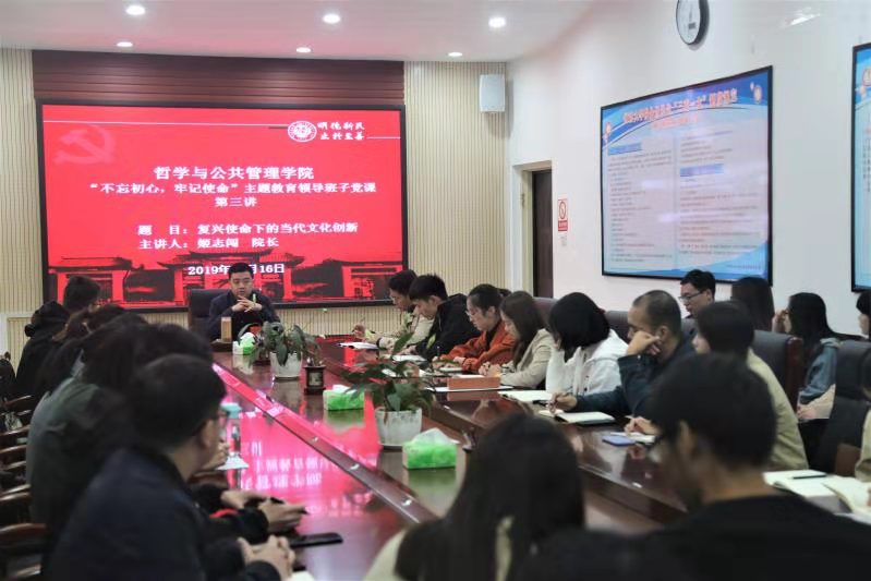 10月16日,学院院长姬志闯同志以《复兴使命下的当代文化创新》为题为入党积极分子上党课。他从中国文化的历史渊源谈起,主要针对中国传统文化和外来文化之间的互动对当代中国文化的影响来讲述。他认为大国崛起之后,对文化有更高的需求,进行当代文化创新非常有必要的。随后,他从“文化”一词的词源学角度,对其进行阐述,并由此推出我们需要在社会动态的实践过程中,进行文化创新。当代文化创新要在以下两方面进行:一是文化自觉,文化创新的前提是文化自觉,了解本土文化并对自身危机的自觉;二是文化重构,当代文化创新需要在对中国文化模式进行总结和反思的基础上,赋予文化生命力,而不是简单的要素组合。他认为文化的生存之道存在于文化的内在力量,文化创新之路也应以近一百年来中国文化所有的成果为基础。