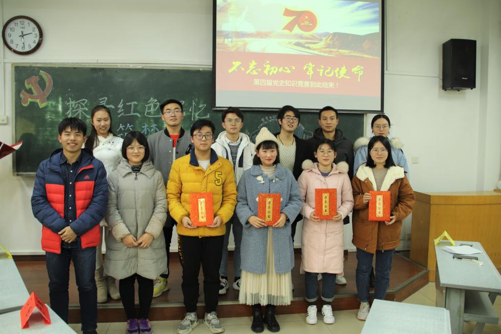 本次比赛分为初赛和决赛。初赛以考察党的相关理论知识为主,由选择题、填空题、判断题以及论述题组成。安静的教室,思维在不停地转动。落笔之处,都是党的精神所在。笔试结束后,同学们纷纷表示本次笔试进一步促进了自己对于党史知识的掌握和了解、提升了自身的理论水平和党性修养。经过初赛的笔尖争战,12名同学脱颖而出,入围决赛。经过随机组队,参赛同学被分为四队,同亲友团一起进行三个比赛环节,角逐最后的冠军。在“理论知识大PK——一站到底”环节中,四组成员两两对抗,双方轮流作答,回答准确而迅速,场上气氛随比赛进行逐渐活跃。在“实事求是现光芒——抢答比拼”环节中,参赛队伍你争我夺,积极抢答,各展锋芒,比赛变得愈加紧张激烈。在“忆苦思甜映初心——主题演讲”环节中,队伍代表根据党史故事讲述自己心中的革命文化,精彩的演讲更是将比赛推向高潮。经过初赛与决赛的层层对决,余鸿源、周甫森、丁莹颖荣获一等奖,周婧涵、张纪渊、杨婉琼荣获二等奖,肖语函、朱金涛、周炎、许哲、李宾倩、孙悦荣获三等奖。
