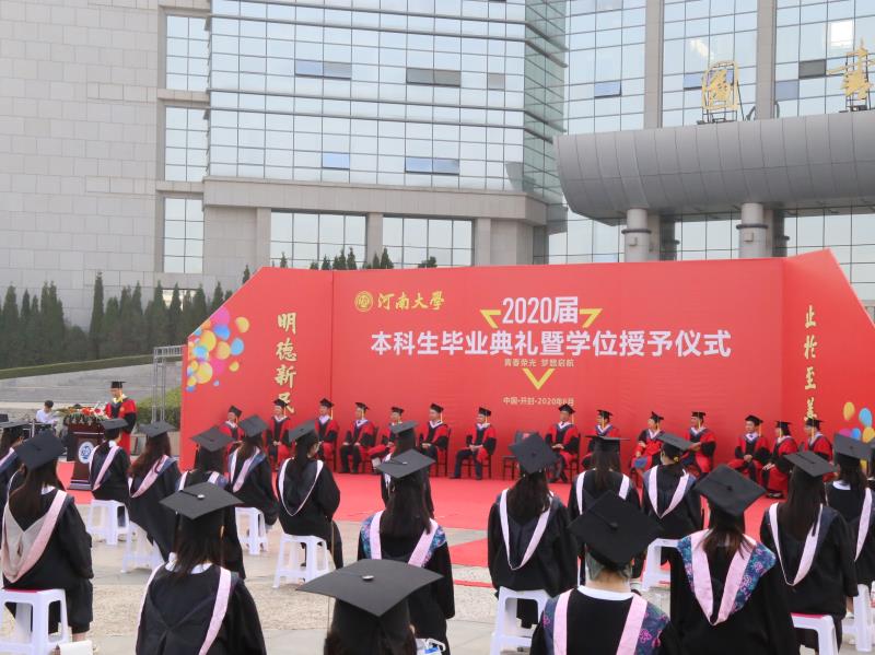 “一朝河大人,一生河大情。昔日的相遇,母校因你们收获一树桃李芬芳;此时的别离,母校为你们寄托一份深深的牵挂。请同学们记住,你们是河大毕业生,河大是你们的家园。你们的世界已经和这里融为一体,我们的牵挂将永远与你们同行。”雷霆鼓励同学们,在未来的人生道路中要永远做学校的代表和代言人。言之切切,引发典礼现场阵阵热烈的掌声。这是一个特别的毕业季,有许多无奈和缺憾,但与河大联结的日子,是所有河大学子难忘的时光。