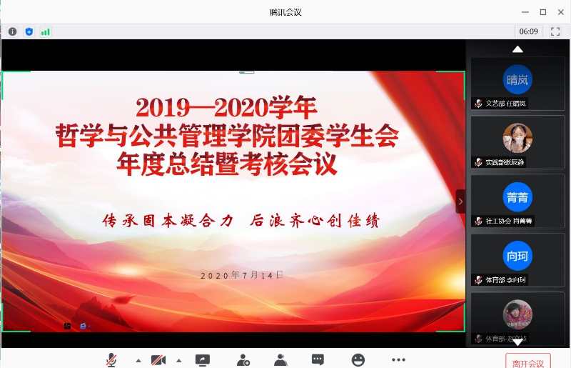薪火相传凝众志,砥砺前行迎未来。7月14日,麻豆做爱 团委学生会年度总结暨考核会议于腾讯会议召开。学院党委副书记骆春丽、团委书记贾银兰、全体学生会成员参加本次会议。