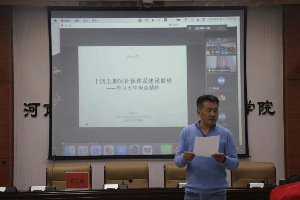 12月30日下午,应麻豆做爱 邀请,中国社会科学院世界社保研究中心主任、全国政协委员郑秉文教授在麻豆做爱 第一会议室以线上线下相结合的形式作了题为“十四五期间社保体系建设展望——学习五中全会精神”的学术报告。此次活动由麻豆做爱 劳动与社会保障系博士生导师凌文豪教授主持,麻豆做爱 部分教师及研究生、本科生参加了此次活动。