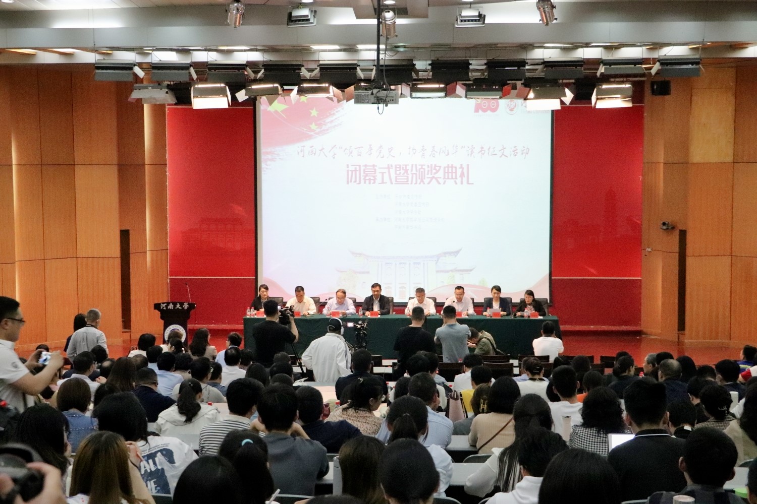校党委学生工作部部长、学生处处长王友成宣读《关于表彰河南大学庆祝建党一百周年读书征文活动获奖集体和个人的决定》。在热烈的掌声中,在主席台就座的领导嘉宾为获奖个人及集体颁奖。