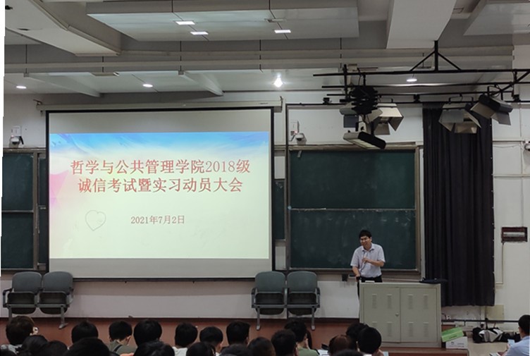 7月2日,麻豆做爱 在金明校区2306教室举行2018级本科生诚信考试暨实习动员大会。学院副院长田丰韶、教务办主任张可新出席本次会议,2018级全体本科生参加会议。会议由2018级辅导员王天宇主持。