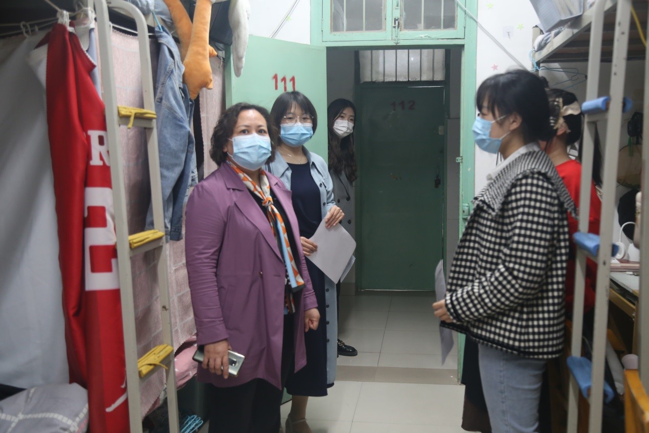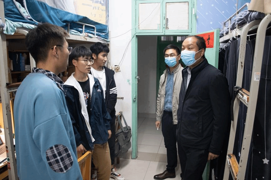 为进一步推动学院疫情防控工作落细落实,强化学生防疫安全意识,关爱学生心理健康状况,学院党委书记党鸿军、院党委副书记骆春丽、副院长赵炎峰、副院长马翠军、副院长田丰韶和副院长齐月祥一行,分别于4月11日、14日前往综合教学楼、学生宿舍检查学生疫情防控工作,关怀问候学生。