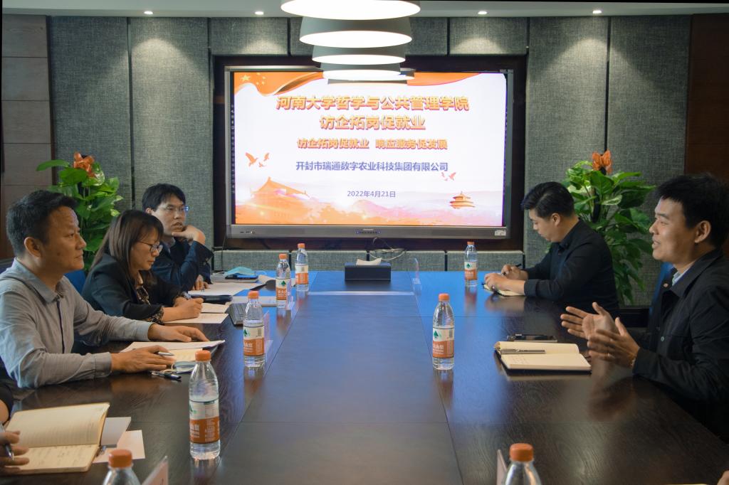 为积极拓宽毕业生就业市场,切实加强校企合作,深化产教融合,4月21日下午,学院党委书记党鸿军、党委副书记骆春丽、副院长马翠军、副院长田丰韶、副院长齐月祥和学院研究生、本科生毕业年级辅导员等9人赴河南瑞通灌排设备有限公司考察交流,公司总经理杨亚伟、执行运营总监胡经纬等热情接待了学院领导一行。