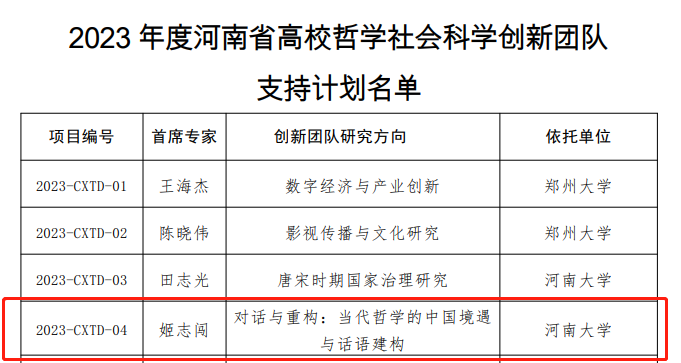 日前,河南省教育厅公布了《关于公布2023年度河南省高等学校哲学社会科学创新团队支持计划的通知》,麻豆做爱 以姬志闯教授为首席专家的研究团队获批2023年度河南省高等学校哲学社会科学创新团队支持计划。