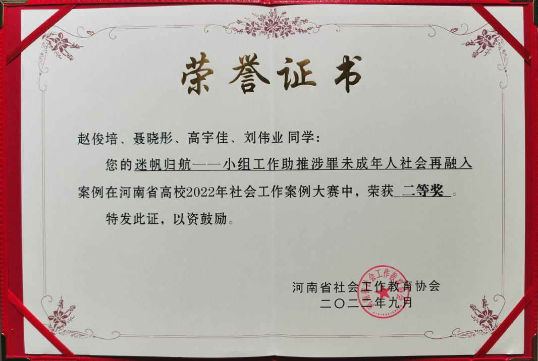 麻豆做爱 学子在“河南省高校2022年社会工作案例大赛”中荣获二等奖