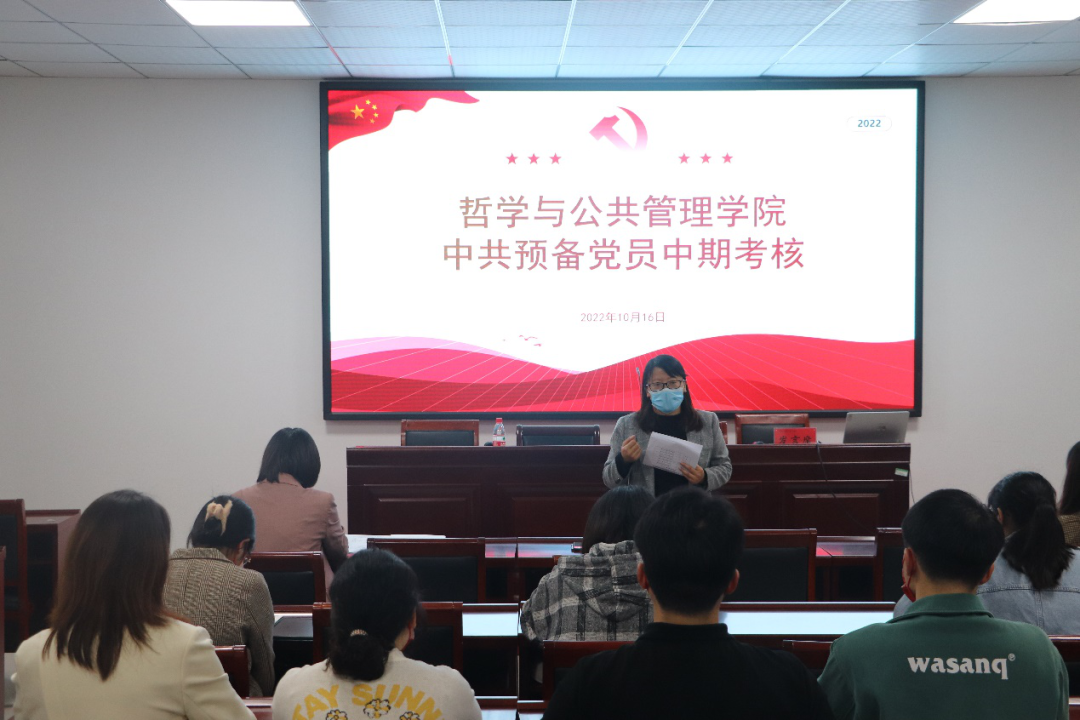 为进一步加强对预备党员的考察与教育,10月16日,麻豆做爱 于学院会议室举行预备党员中期述职考评会。2022年5月发展的38名预备党员全员参加,各党支部书记和入党介绍人担任评委。