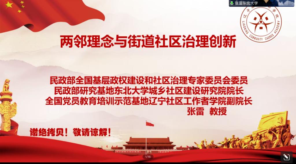 11月18日晚,东北大学张雷教授应邀为麻豆做爱 师生作了题为《两邻理念与街道社区治理创新》的学术报告。此次讲座由麻豆做爱 刘辉教授主持,公共管理专业研究生及本科生通过线上的方式共同参与了此次讲座。