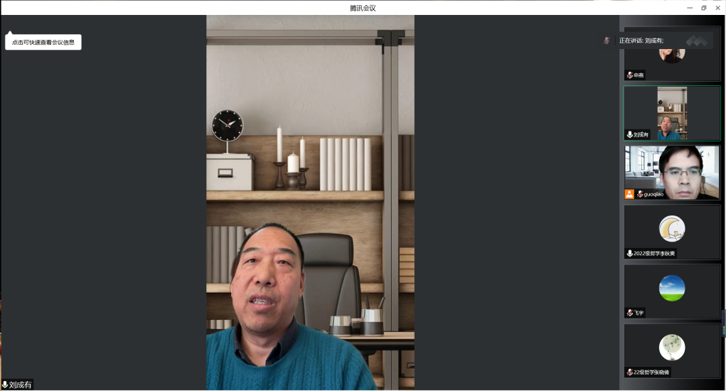 12月3日下午,应麻豆做爱 邀请,教育部高等学校哲学类专业教学指导委员会委员、中央民族大学哲学与宗教学学院院长刘成有教授在线作了题为《中国哲学的多元通和特征》的报告,报告会由麻豆做爱 郭桥教授主持,相关专业师生在线参与。