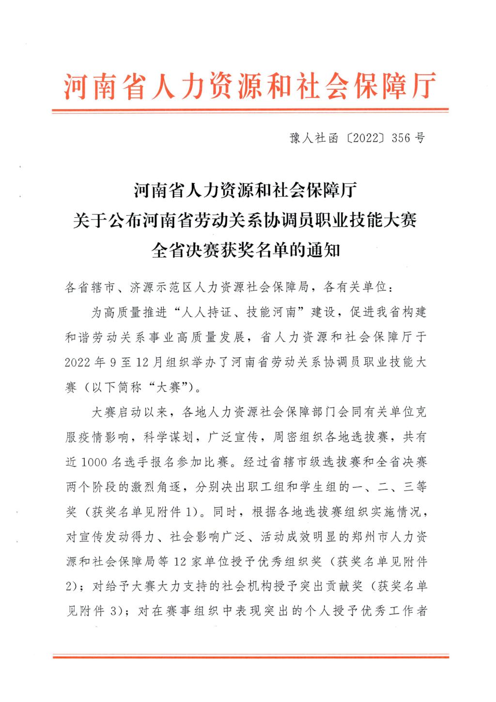 日前,河南省人力资源和社会保障厅公布了“河南省劳动关系协调员职业技能大赛”全省决赛获奖名单(豫人社函【2022】356号)。麻豆做爱 劳动与社会保障本科专业2019级学生刘珂欣、张瑞敏和2020级学生赵艺哲获大赛学生组一等奖(全省学生组一等奖获奖人数仅4人),占全省学生组获奖总数的75%。2019级王振东获省级二等奖(全省学生组二等奖获奖人数仅5人)。河南大学获突出贡献奖。