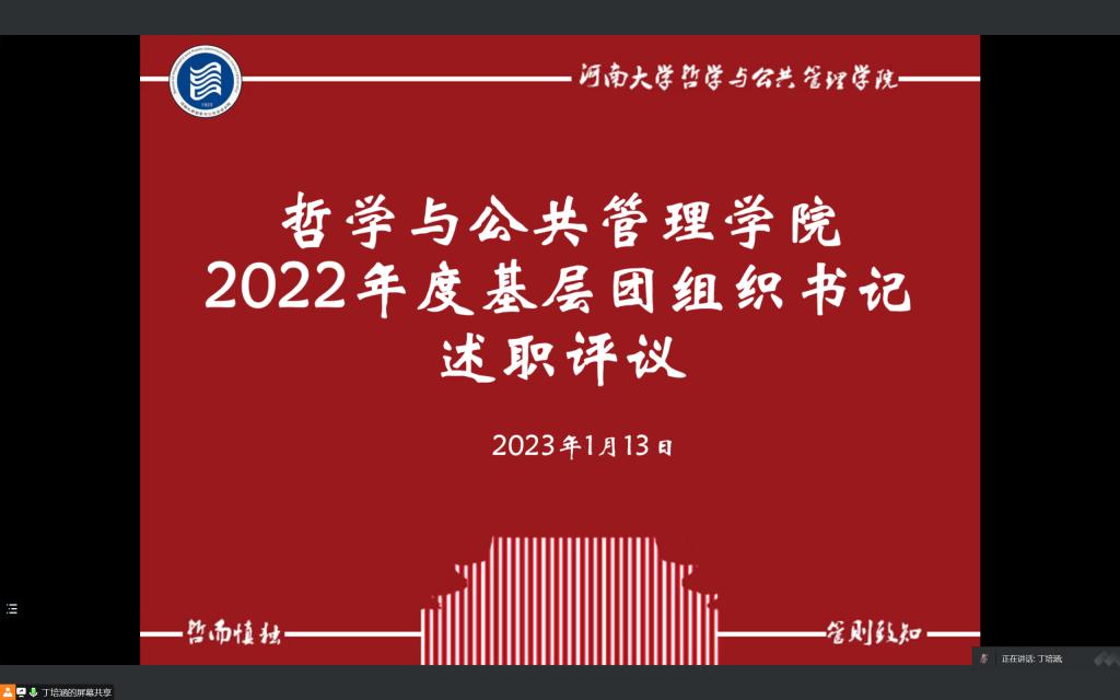 为贯彻落实团中央《关于印发<基层团组织书记述职评议考核暂行办法>的通知》和全面从严治团要求,麻豆做爱 响应校团委号召于1月13日线上召开2022年度基层团组织书记述职评议会。院团委老师王天宇、32名团支部书记和16名学生代表出席会议。会议由院团委副书记丁培涵主持。