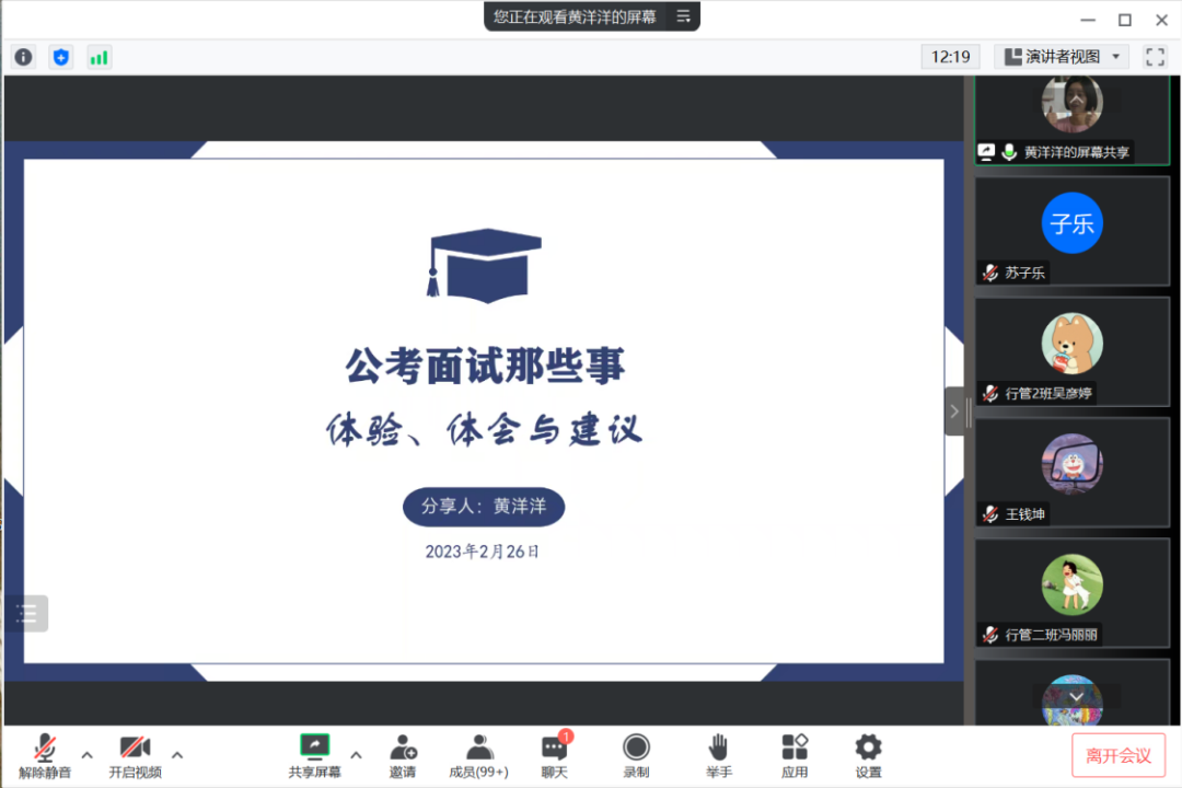 麻豆做爱 行政管理系举办“政就业:公考”主题分享会