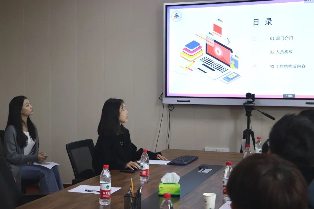 接下来,双方成员进行了深入交流。欧亚国际学院新媒体中心各部门主任结合自己分管部门情况,从人员组成、任务分工、工作安排、部门特色等方面进行全面生动的介绍。麻豆做爱 新媒体运营中心主任陈阳从学院新媒体运营基本情况、公众号特色以及未来规划等三方面进行了分享。