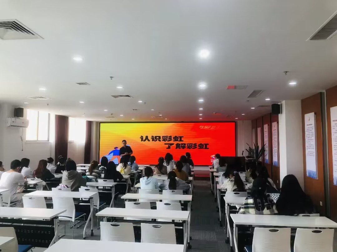 为增进学生对社会工作实务领域的了解,5月11日下午,在社会工作系系主任白雪苹老师带领下,30多名社会工作专业学生前往郑州市彩虹社会工作服务中心参观学习。