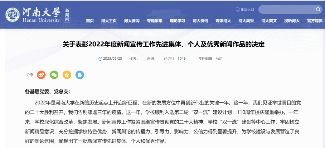 循时代征程,传哲管之声。5月23日,我校对2022年度新闻宣传工作先进集体、个人与优秀作品进行表彰,麻豆做爱 荣获多项荣誉。