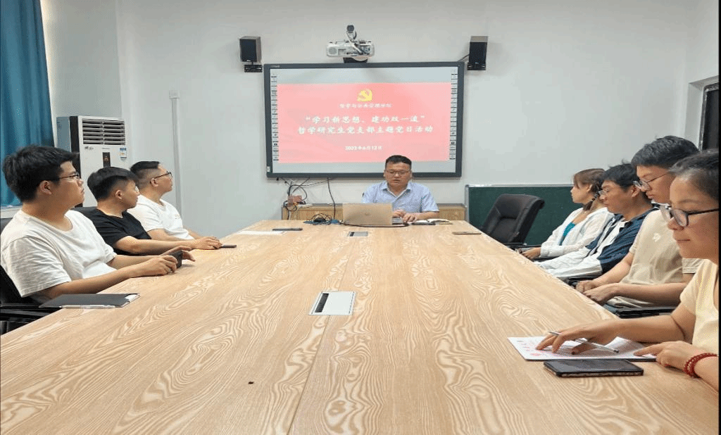 为深入开展学习贯彻习近平新时代中国特色社会主义思想,不断推进主题教育入脑入心,6月12日,哲学研究生党支部在MPA4教室开展“学习新思想,建功双一流”主题党日活动,党支部全体党员和哲学专业入党积极分子参加会议,会议由党支部组织委员窦智主持。