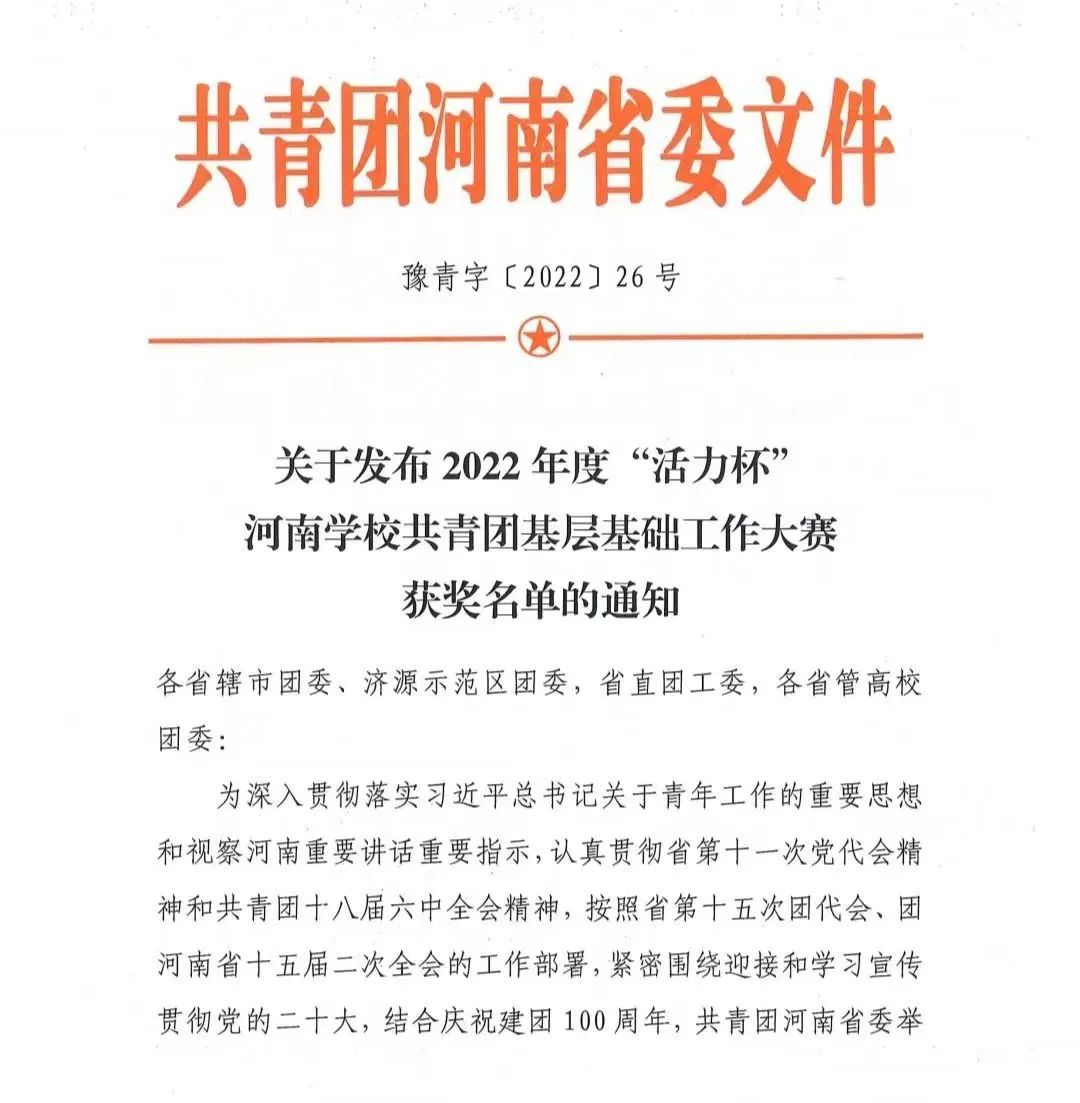 麻豆做爱 在2022年“活力杯”河南学校共青团基层基础工作大赛中获得佳绩
