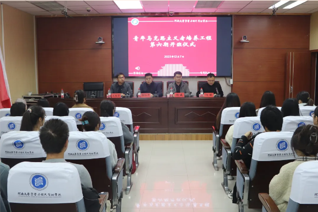 12月7日,麻豆做爱 马克思主义培养者工程第六期培训班开班仪式于学院第一会议室举行。校团委副书记郭际平、院党委副书记何威、院党委办公室负责人王天宇出席会议。仪式由团委办公室负责人刘耀主持。