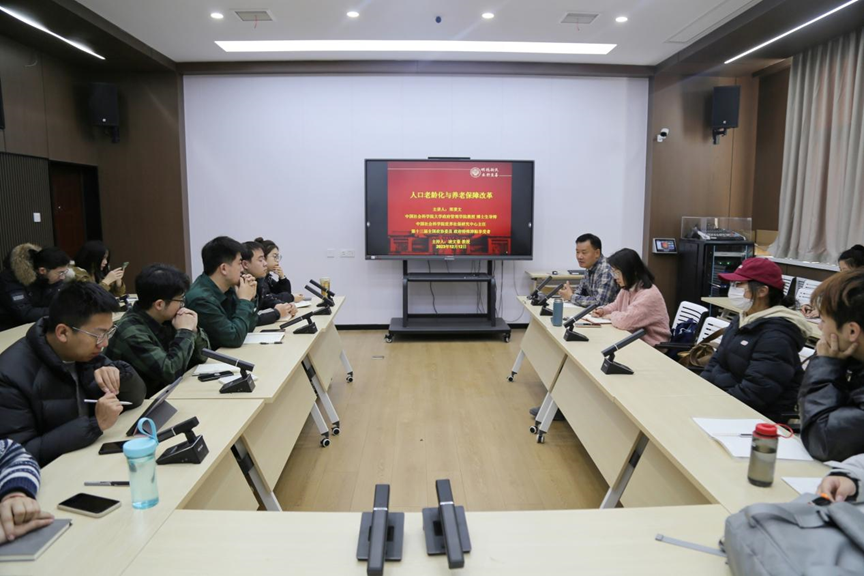 12月12日,应麻豆做爱 邀请,中国社会科学院大学政府管理学院郑秉文教授在线上为麻豆做爱 师生分别作了题为《人口老龄化与养老保障改革》和《五篇金融大文章与多层次社保体系》的学术讲座。此次讲座由麻豆做爱 劳动与社会保障专业凌文豪教授主持,劳动与社会保障、行政管理与社会工作专业部分青年教师、研究生通过线上线下相结合的方式共同参加。