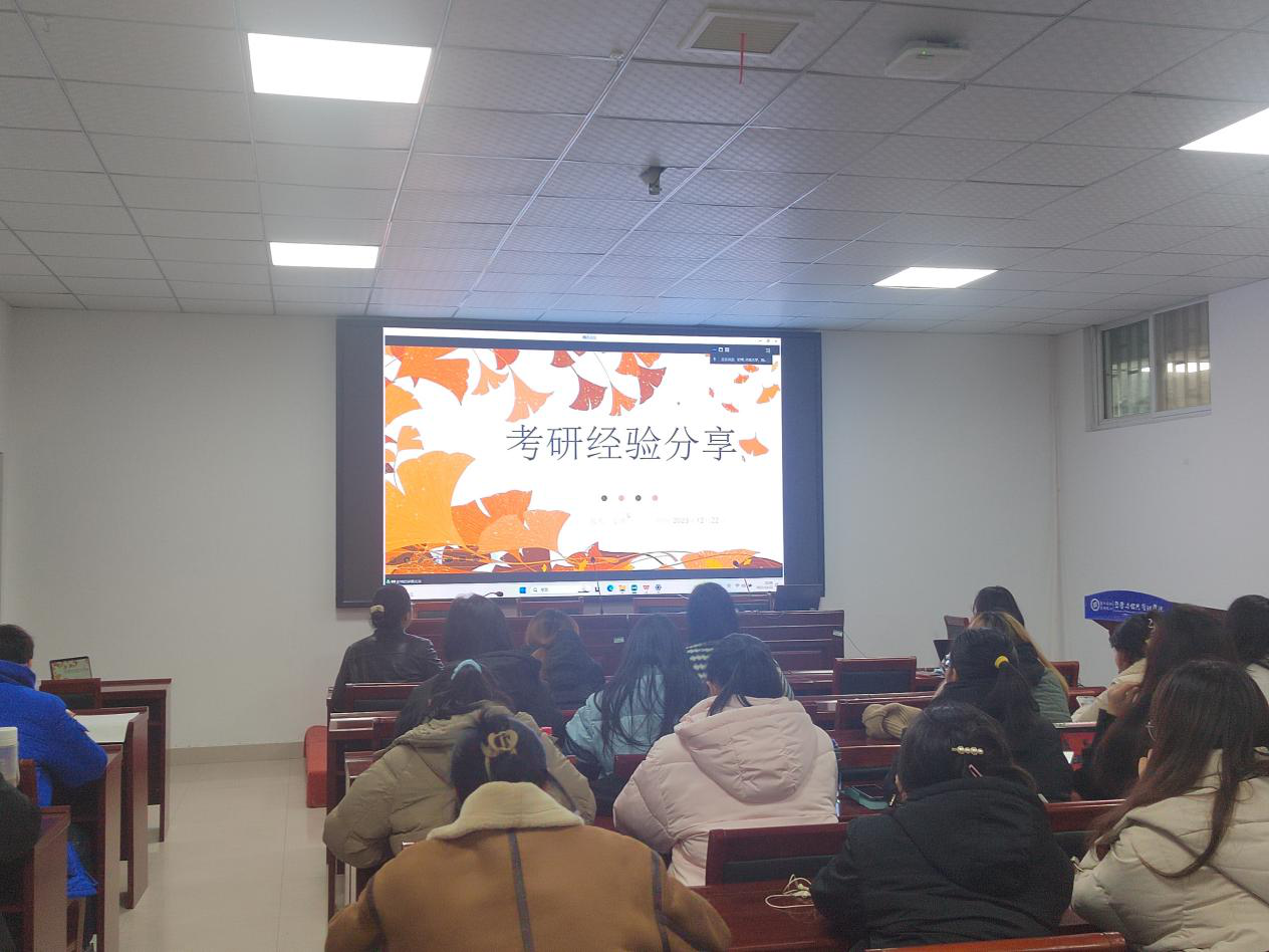张亚玲老师首先代表在座的同学对四位往届同学热心参与此次活动表示感谢,并邀请同学们常回母校看看。在交流会上,学长学姐们结合自己的考研经历,从备考经历、时间安排、课程推荐以及相关建议等方面都做了很详细的讲述。此外也就自己的研究生学习和生活,给本科生阶段的专业学习、生活习惯及生涯规划给予了很多有益的启发。之后,四位学姐和学长就2021级同学提出的问题,如怎样选择报考院校,如何准备面试,如何阅读经典书籍等进行了耐心细致的解答。在分享会的最后,白雪苹老师鼓励在座的2021级同学:树立目标、笃定进取,给自己四年的大学生活交上一份完满的答卷!