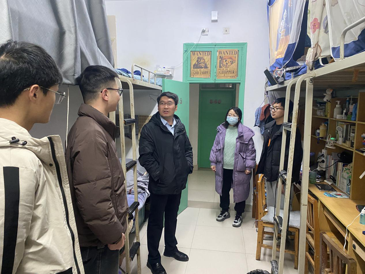 为落实学生返校情况,2月25日晚,学院党委副书记何威带领各年级辅导员深入学生宿舍慰问看望,与同学们进行面对面交流。结合近期全国火灾安全典型案例,何威细心叮嘱同学们注意宿舍用电等安全,守牢安全底线,并对学生有关新学期学习生活等方面问题进行解答。在随后召开的学院学生工作例会上,他要求进一步压实责任,对未返校学生逐一联系,确保每一名学生安全返校。