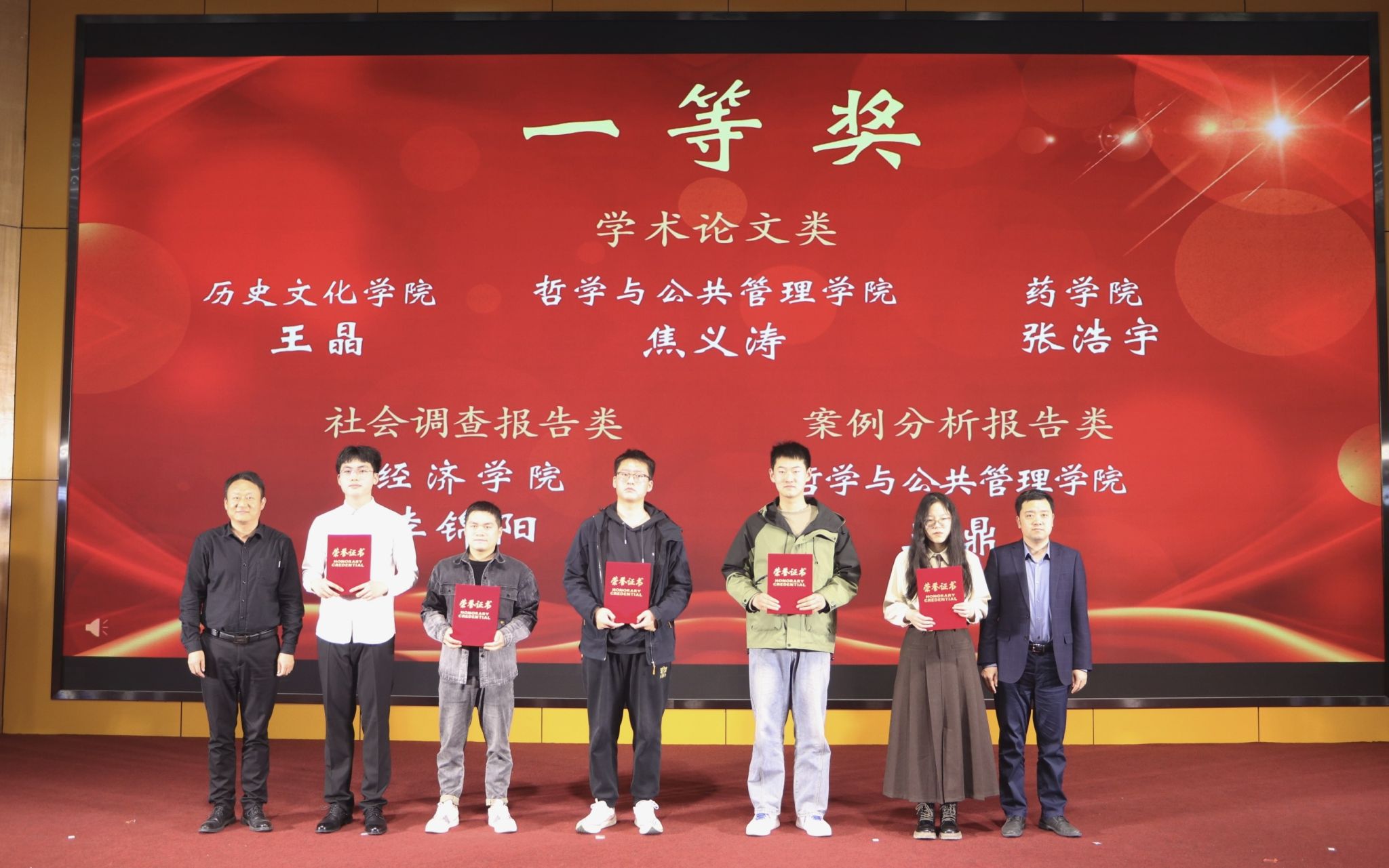 本届学术节以“坚定文化自信,推动文化繁荣,建设现代文明”为主题,收到来自校内30多个学院的310多篇参赛作品,经专家评审,共评选出学术论文类、社会调查研究类、案例分析报告类三个赛道的31篇获奖作品。在激昂欢快的乐曲声中,与会嘉宾、领导、老师共同为获奖学生和团队颁奖。