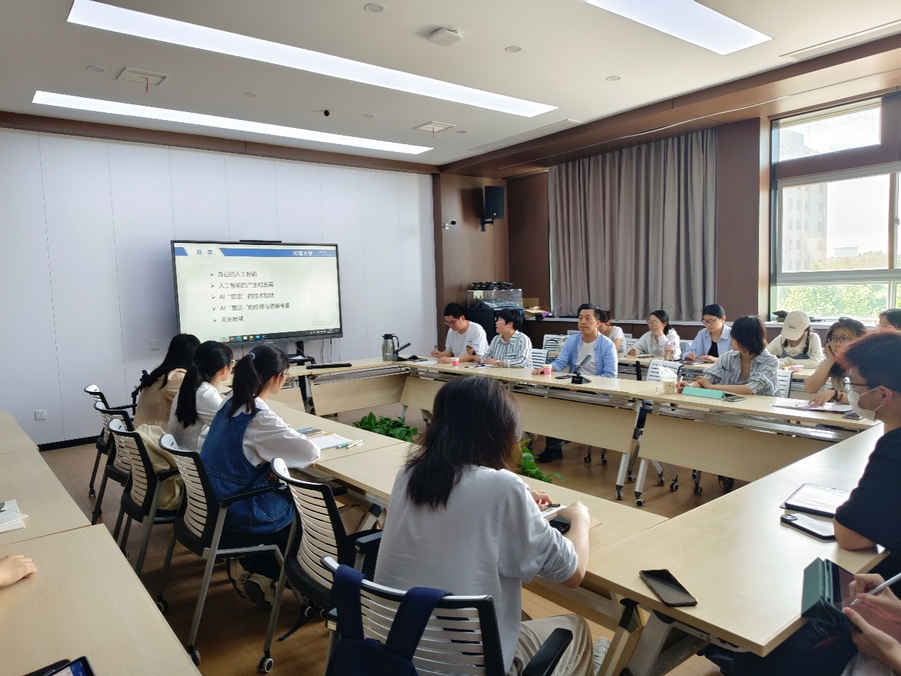 4月27日上午,麻豆做爱 举行主题为“AI复活:技术的边界与道德的考量”的哲学明德学术沙龙,人工智能学院黄紫晴老师应邀主讲,宋春沅主持,叶平老师作为与谈人与2022级、2023级哲学明德班同学共同参与。