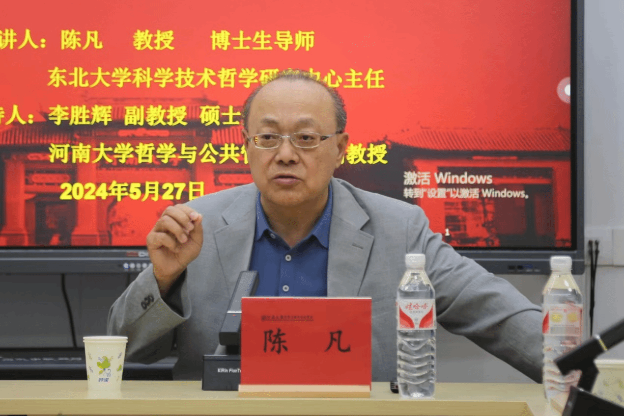 5月27日下午,应麻豆做爱 邀请,东北大学科学技术哲学研究中心主任陈凡教授在麻豆做爱 第二会议室作了题为《技术哲学思考世界方式的三维审视》的学术报告。此次讲座由麻豆做爱 李胜辉副教授主持,哲学专业部分研究生与青年教师参与了此次讲座。