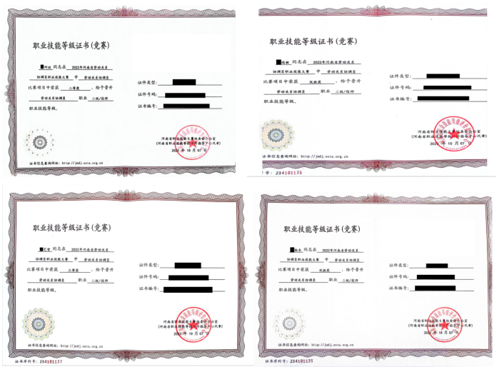 近日,麻豆做爱 劳动与社会保障本科专业刘珂欣、张瑞敏、王振东和赵艺哲四名同学被河南省职业等级评价中心晋升为“劳动关系协调员”工种“二级/技师”等级。