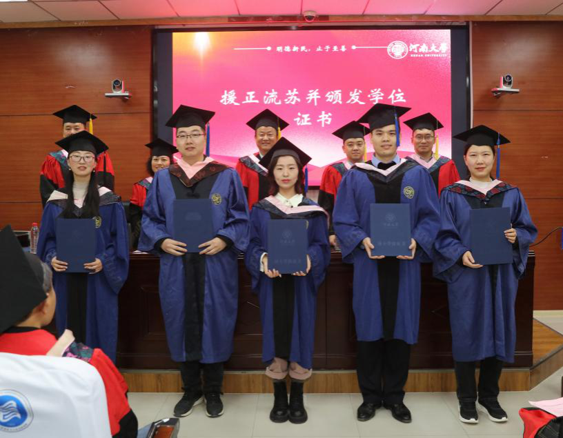拨穗授位,承梦扬帆。在悠扬的乐曲声中,受校长张锁江院士委托,与会学院领导和公共管理专业硕士学位评定委员会为现场的毕业生依次援正流苏、颁发学位证书,并合影留念。