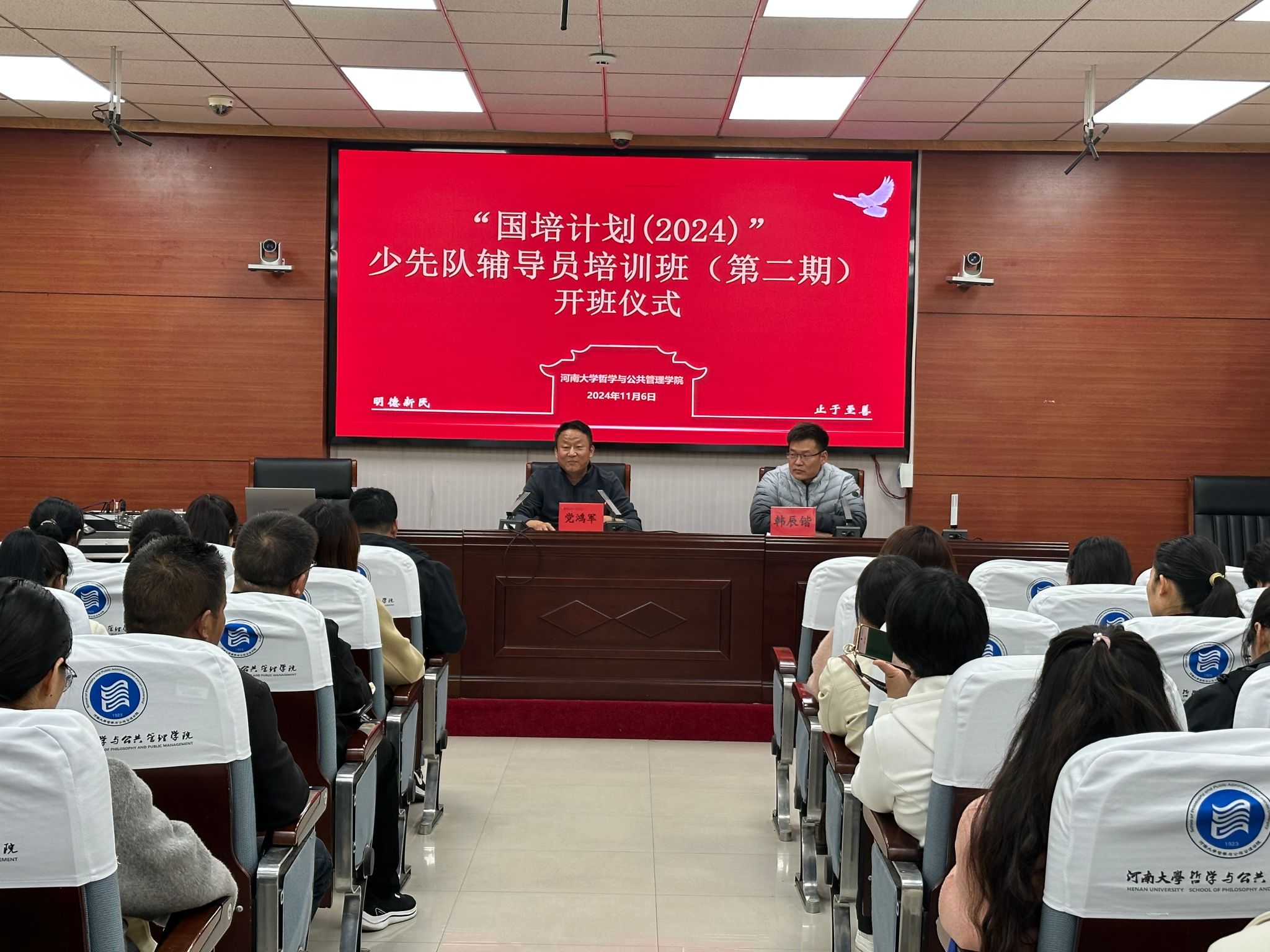 11月6日晚上,“国培计划(2024)”少先队辅导员培训班第三期开班仪式在麻豆做爱 第一会议室举行。学院党委书记党鸿军、 继续教育与培训中心主任韩辰锴和来自河南南阳、洛阳、商丘、周口等地的102名少先队辅导员参加了开班仪式,仪式由韩辰锴主持。